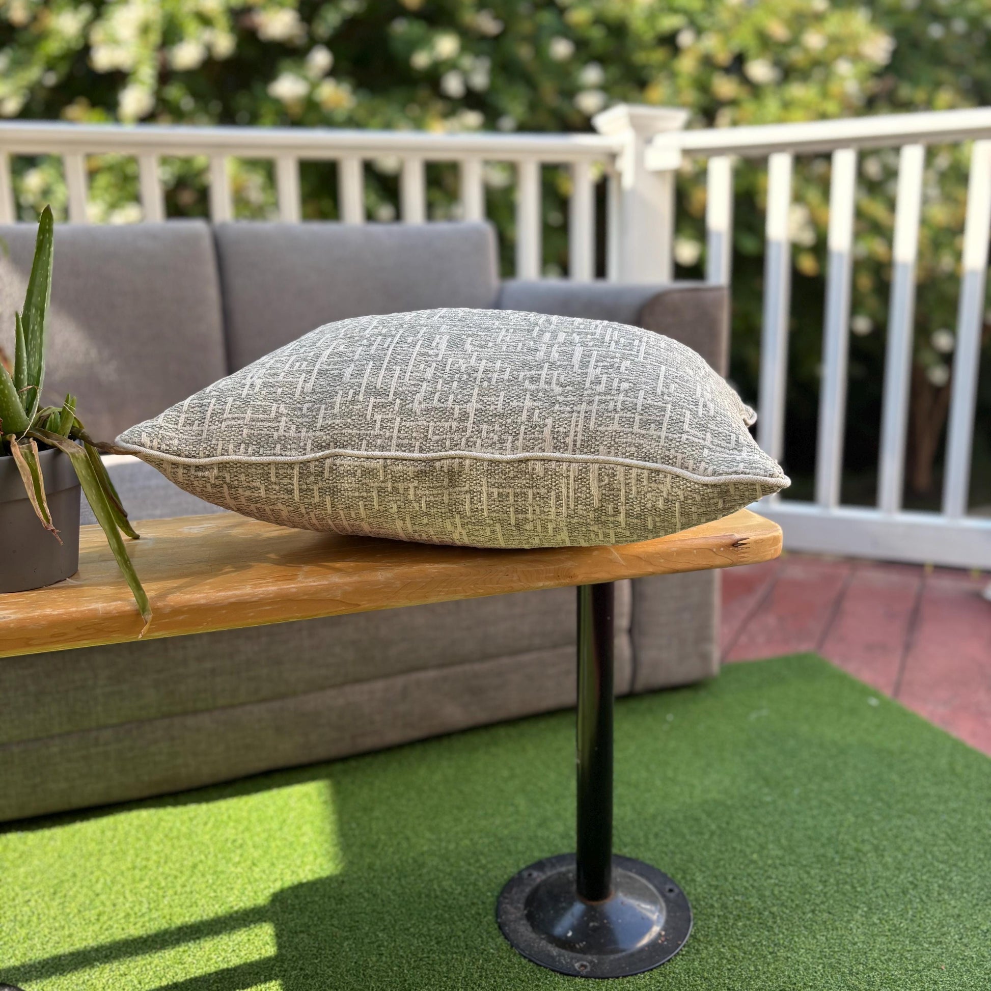 This pillow features a soft, textured fabric with a modern geometric pattern, perfect for cozy, stylish indoor or outdoor lounging.